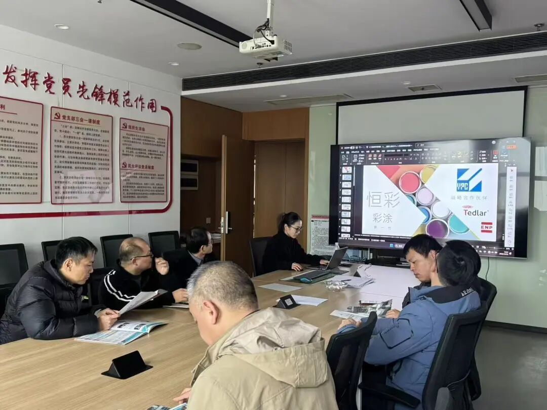 对此晋强实业重点向其演示了烨辉(中国)PVF覆膜钢板与烤漆钢板的耐候数据,期待后续能有更多合作机会。
